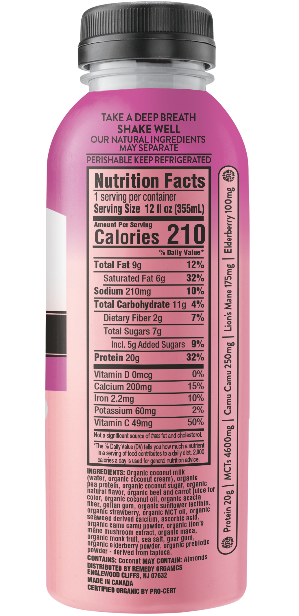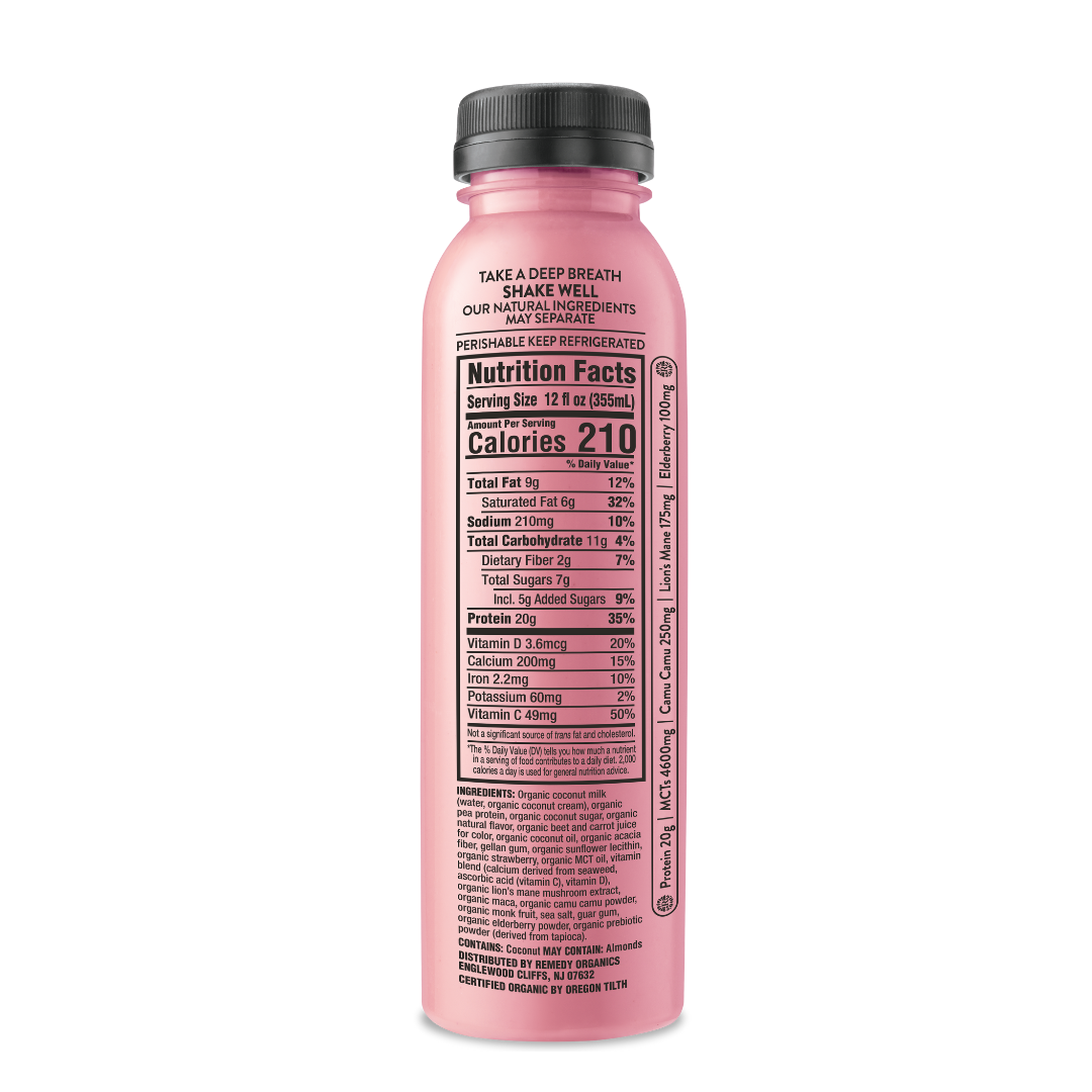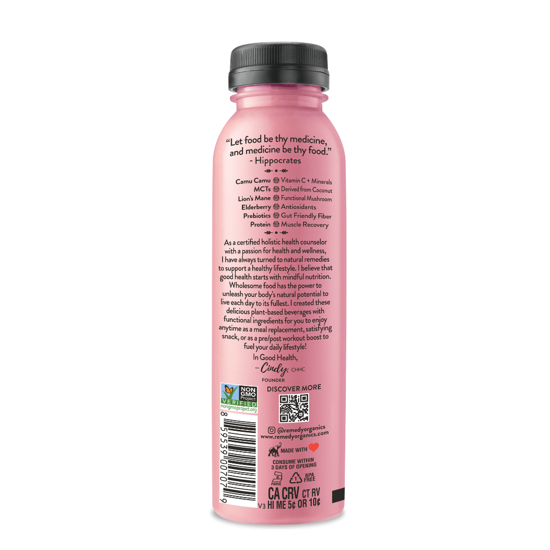 Berry Immunity is 100% plant-based and made with elderberry (antioxidants), camu camu (minerals + Vitamin C), lion’s mane (functional mushroom), prebiotics (gut friendly fiber) and protein for muscle recovery. Berry Immunity is now packed with 20g of Plant-Protein! Berry Immunity is USDA organic, non-GMO, dairy-free, gluten-free, soy-free, and vegan.