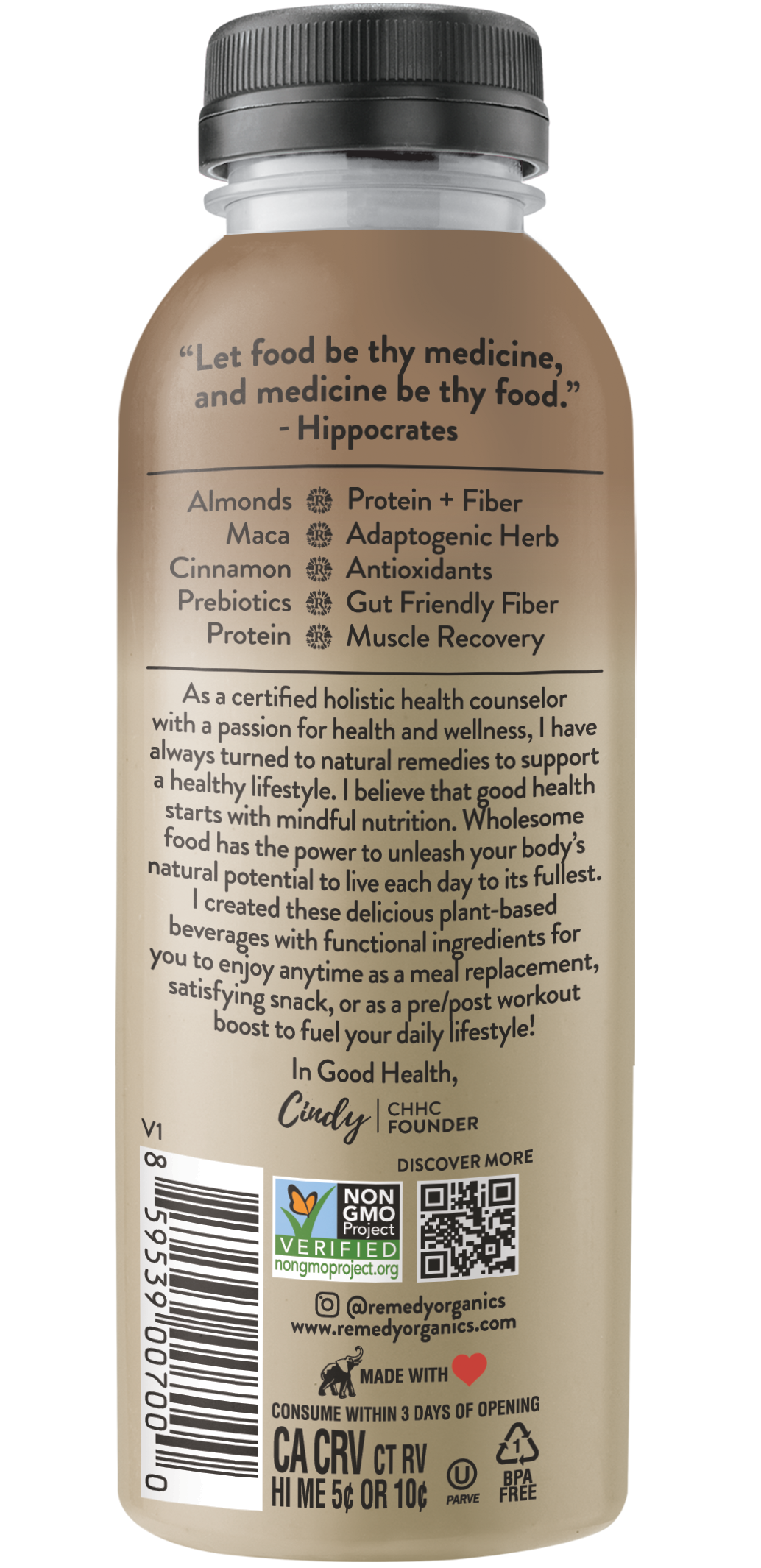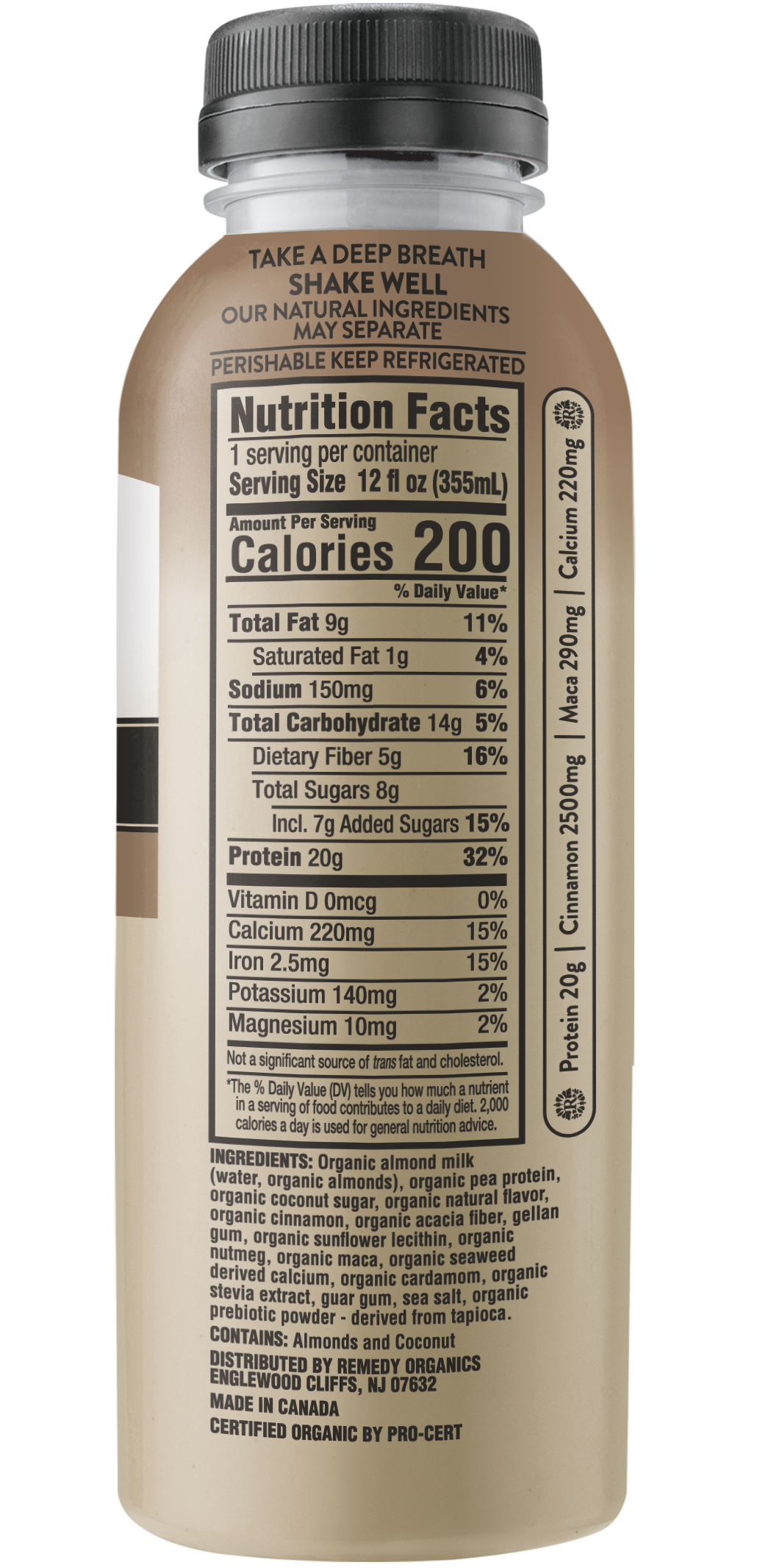 Super Chai Fuel is 100% plant-based and made with almonds (protein + fiber), maca (adaptogenic herb), prebiotics (gut friendly fiber), cinnamon (antioxidant) and protein for muscle recovery. Super Chai Fuel is now packed with 20g of Plant-Protein! Super Chai Fuel is USDA organic, non-GMO, dairy-free, gluten-free, soy-free, and vegan.