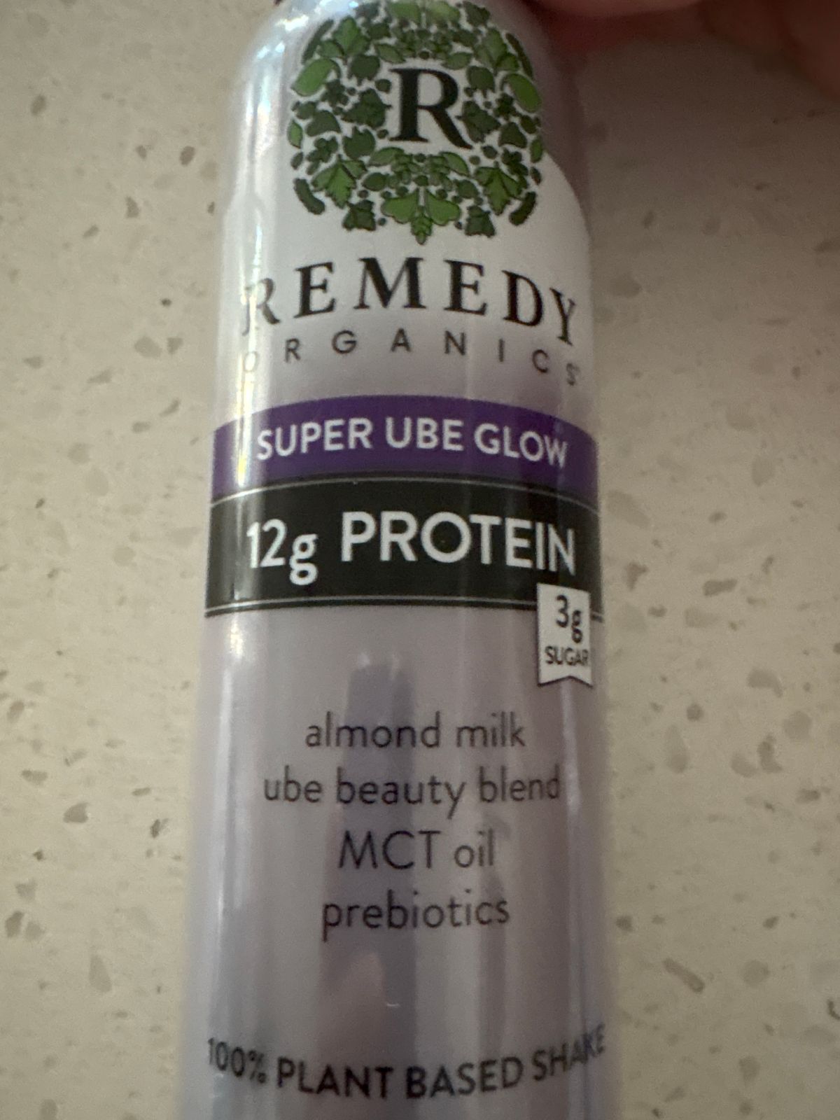 Super Ube Glow is 100% plant-based and made with almonds (protein + fiber), our proprietary ube beauty blend (purple sweet potato, pomegranate extract, camu camu, and coconut), MCT oil (made from coconut), prebiotics (gut friendly fiber), and protein (muscle recovery). Super Ube Glow contains 12g of protein, 7g of fat, 3g of sugar, and zero cholesterol. Super Ube Glow is USDA organic, non-GMO, dairy-free, gluten-free, soy-free, and vegan.